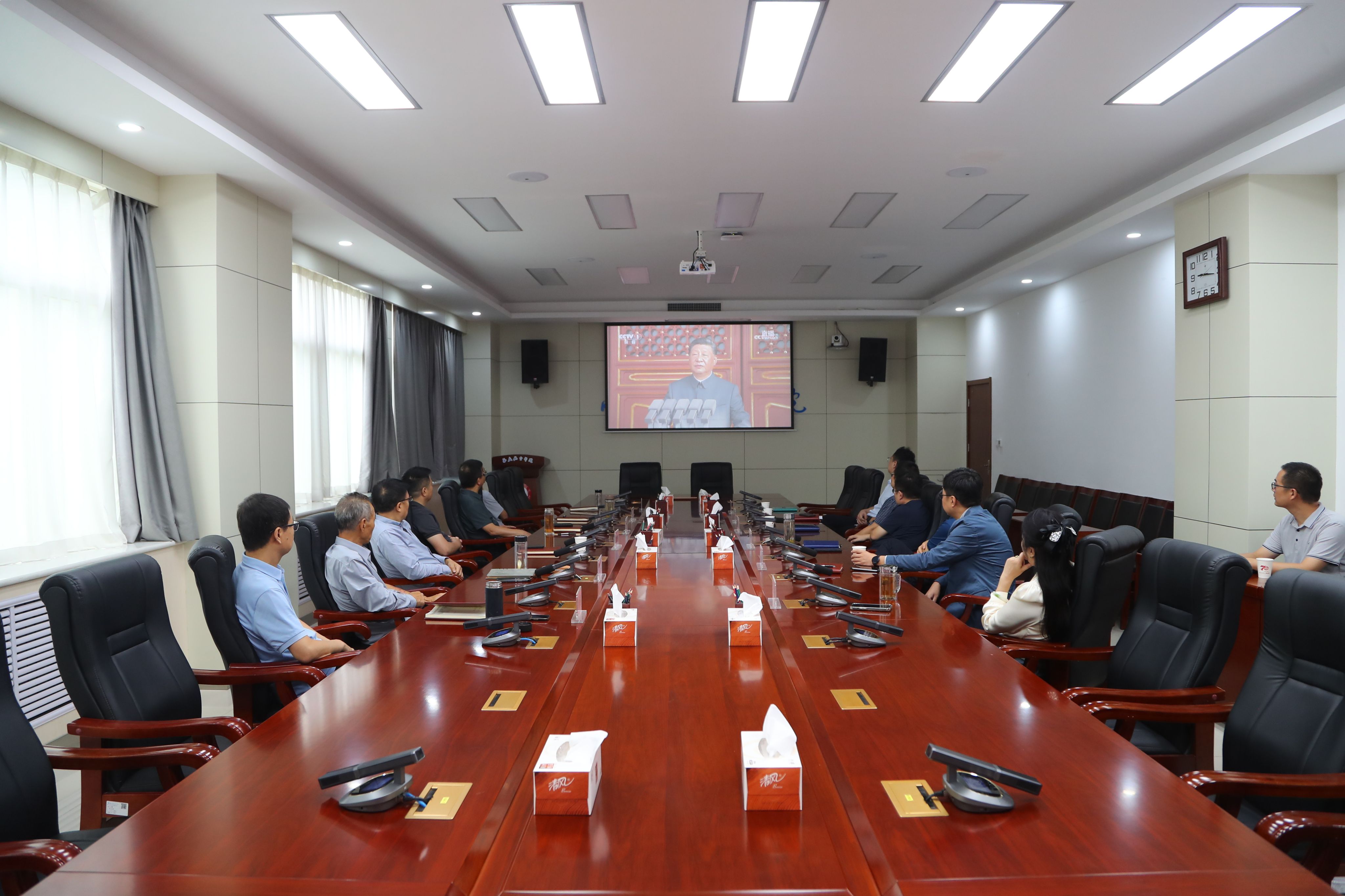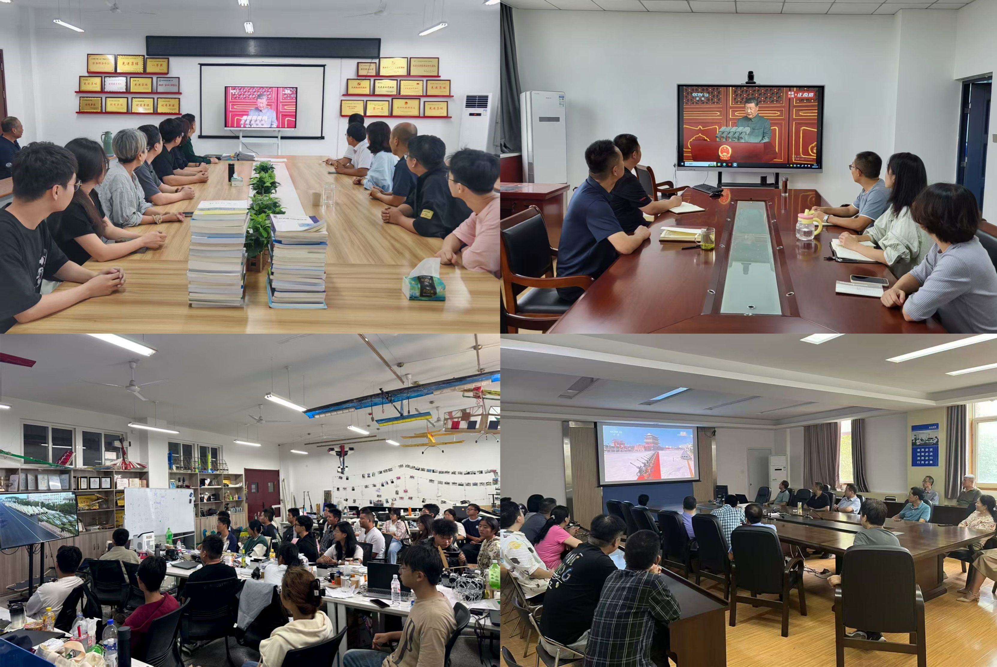 9月3日上午,纪念中国人民抗日战争暨世界反法西斯战争胜利80周年大会在北京天安门广场隆重举行,中共中央总书记、国家主席、中央军委主席习近平出席大会发表重要讲话并检阅受阅部队。我校师生通过多种形式观看大会直播,共同见证了这一激动人心的历史时刻。学校党委理论学习中心组在阎良校区第二会议室开展集中观看,各二级单位组织师生职工线上线下积极收看。
