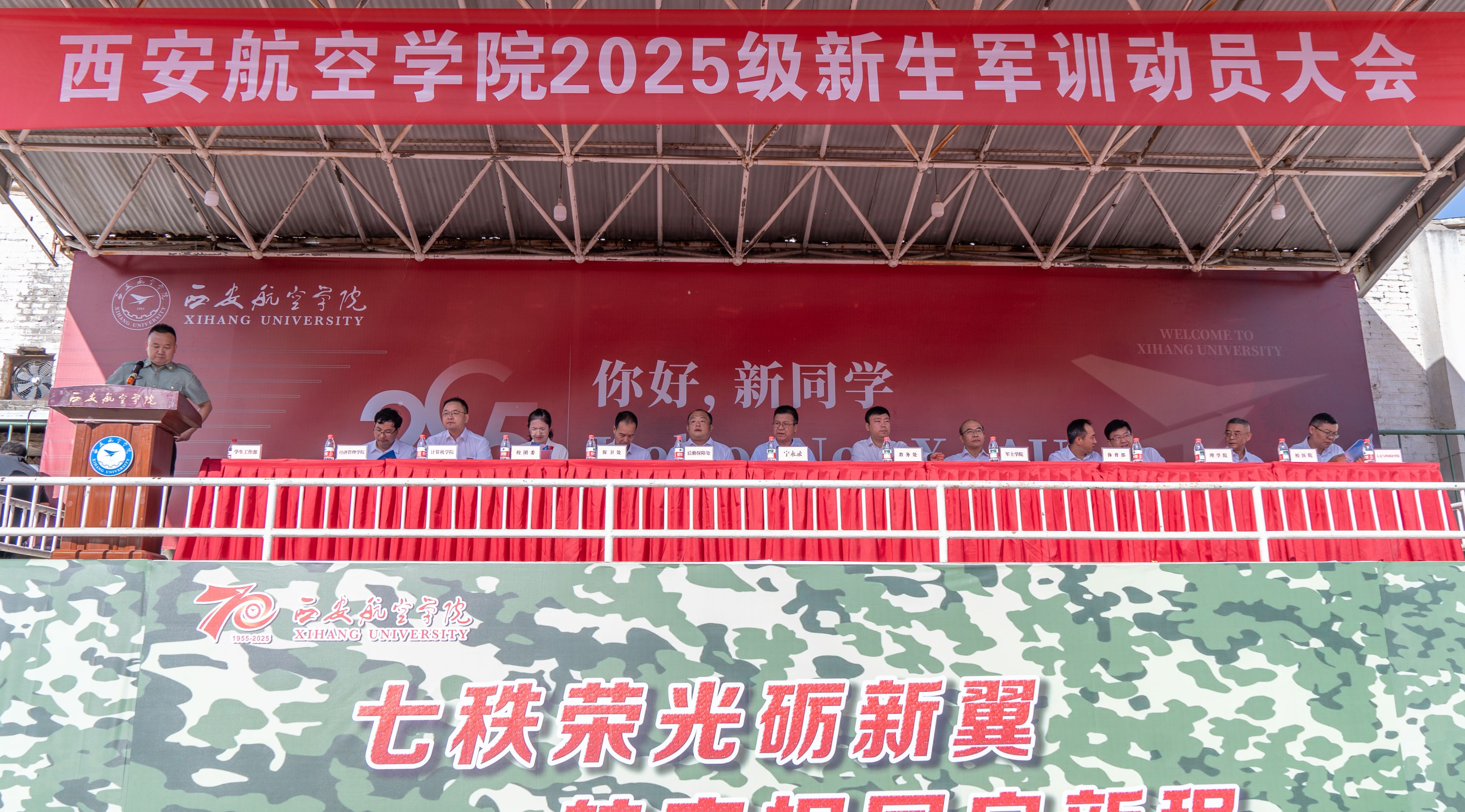 校领导在军训动员讲话中代表全校师生向2025级新生的到来表示欢迎,指出今年是中国人民抗日战争暨世界反法西斯战争胜利80周年,在这个特殊的历史节点上开启军训之旅,是对历史的深切回望与崇高致敬,更是对抗战精神的当代传承与生动实践,要弘扬伟大爱国主义精神、伟大抗战精神和新时代航空报国精神。校领导从思想认识、训练方式、组织安排三个方面对本次军训提出具体要求,希望同学们胸怀爱国之心,牢记新时代大学生历史使命,让理想信念指引人生航程,在军训中磨砺军人底色、淬炼青春意志,以铁的纪律塑造优秀品格、传承红色基因,以努力奋斗书写青春答卷。(文/学生工作部(处) 王晓燕 图/宣传部 审核/李波)