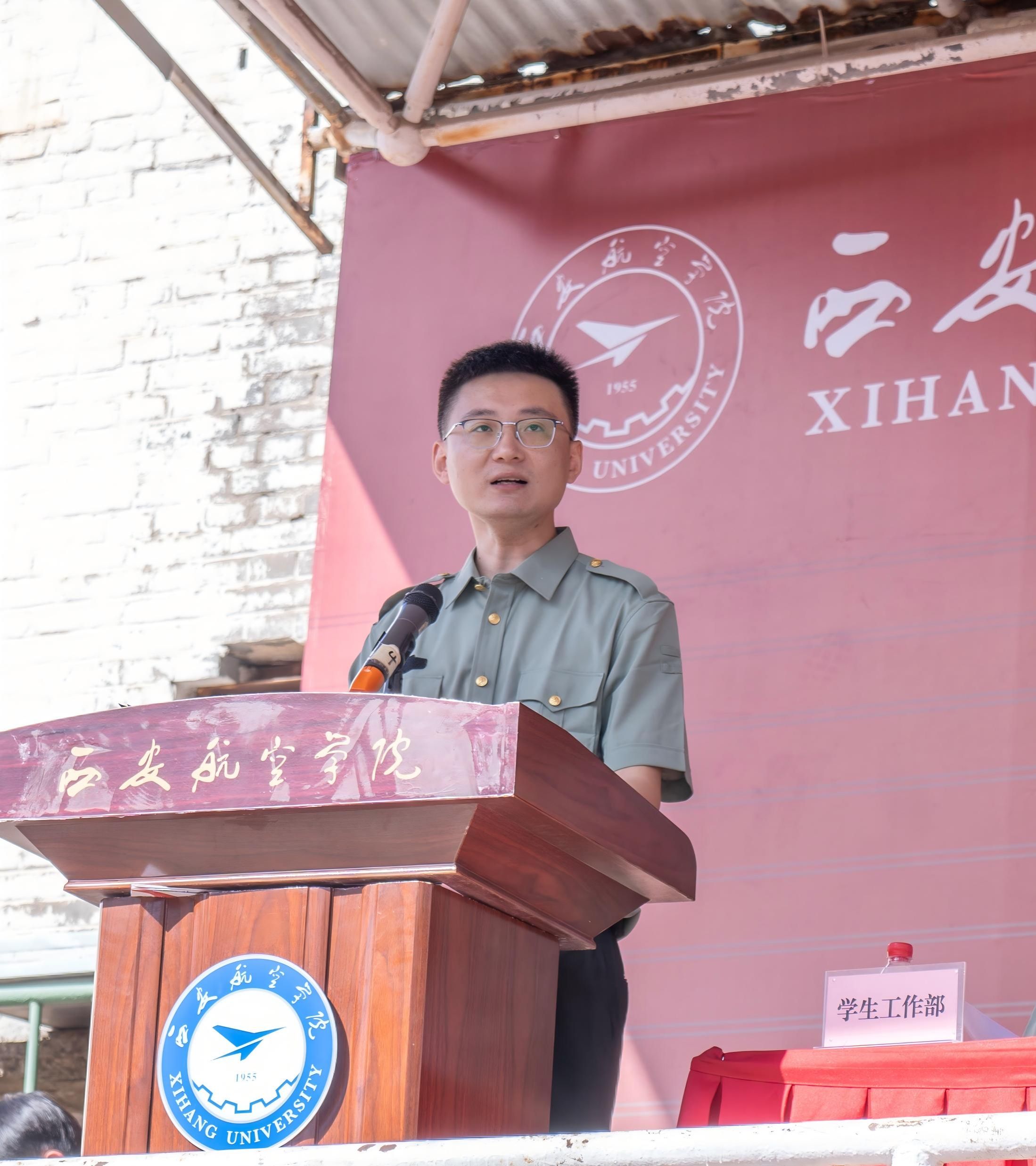 机械工程学院辅导员王鹏博、计算机学院辅导员侯勇代表军训指导员发言,表示将与2025级新生在军训中共同进步、共同成长,寄语同学们铸军魂、砺青春、担大任,在军训中强健体魄、磨炼意志。