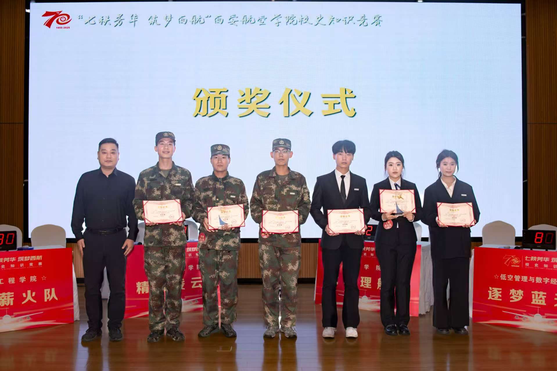 为庆祝建校70周年华诞,深化师生爱校荣校情怀,进一步回顾历史、展示成就、弘扬文化、促进发展,10月11日下午,我校在阎良校区阶一报告厅举办“七秩芳华,筑梦西航”校史知识竞赛决赛。党委副书记宁永录出席活动,党委宣传部、学生工作部(处)、校团委、校友总会等部门负责人,各二级学院党总支书记、副书记、辅导员及学生代表300余人参加了活动。