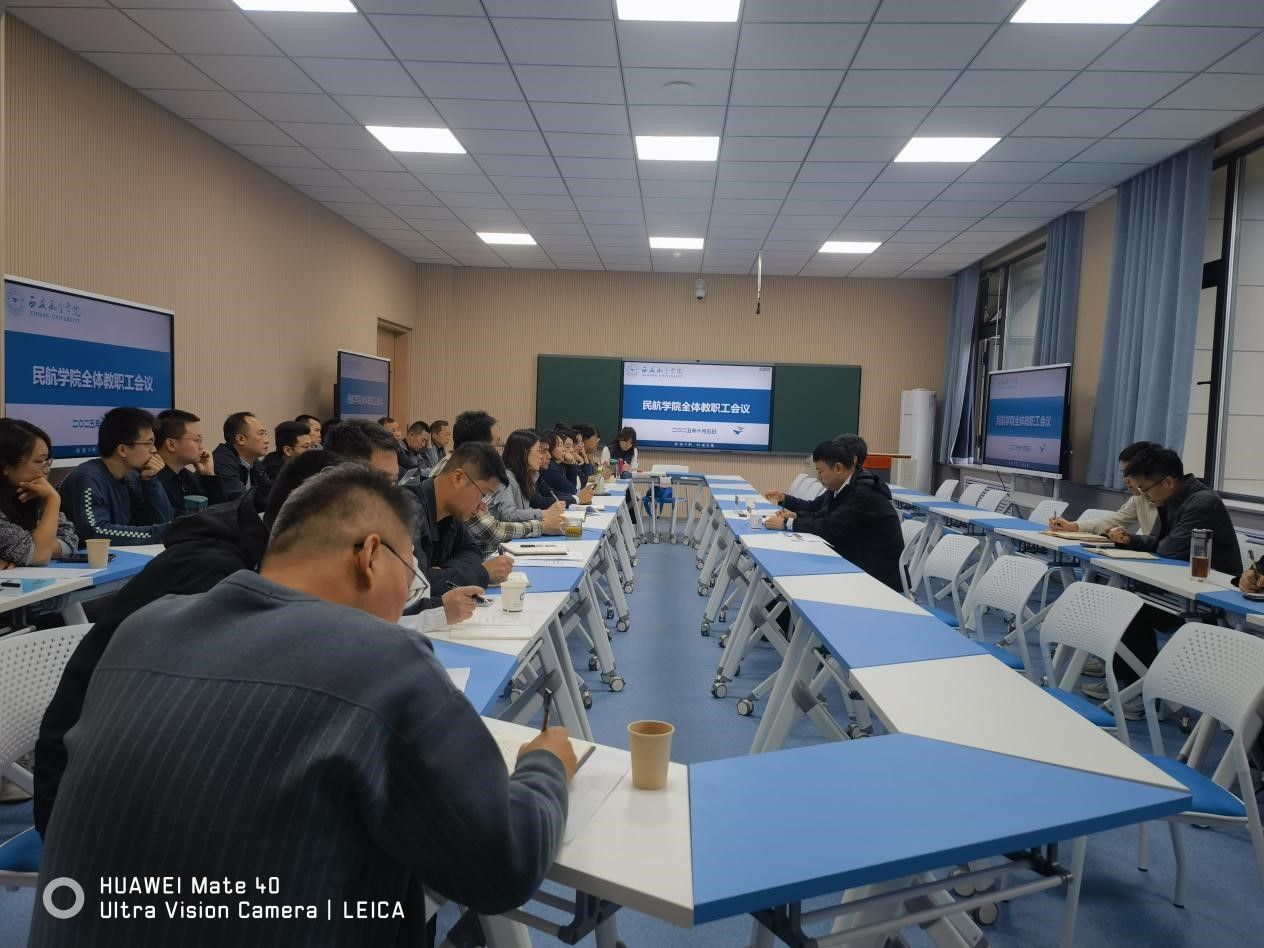 为扎实推进学校审核评估工作,全面提升教育教学质量与管理水平,10月5日,民航学院组织召开全院教职工大会。校领导宋文学、教务处副处长曹栋到会指导,学院班子成员及全体教职工参加,会议由院长吕毅主持。