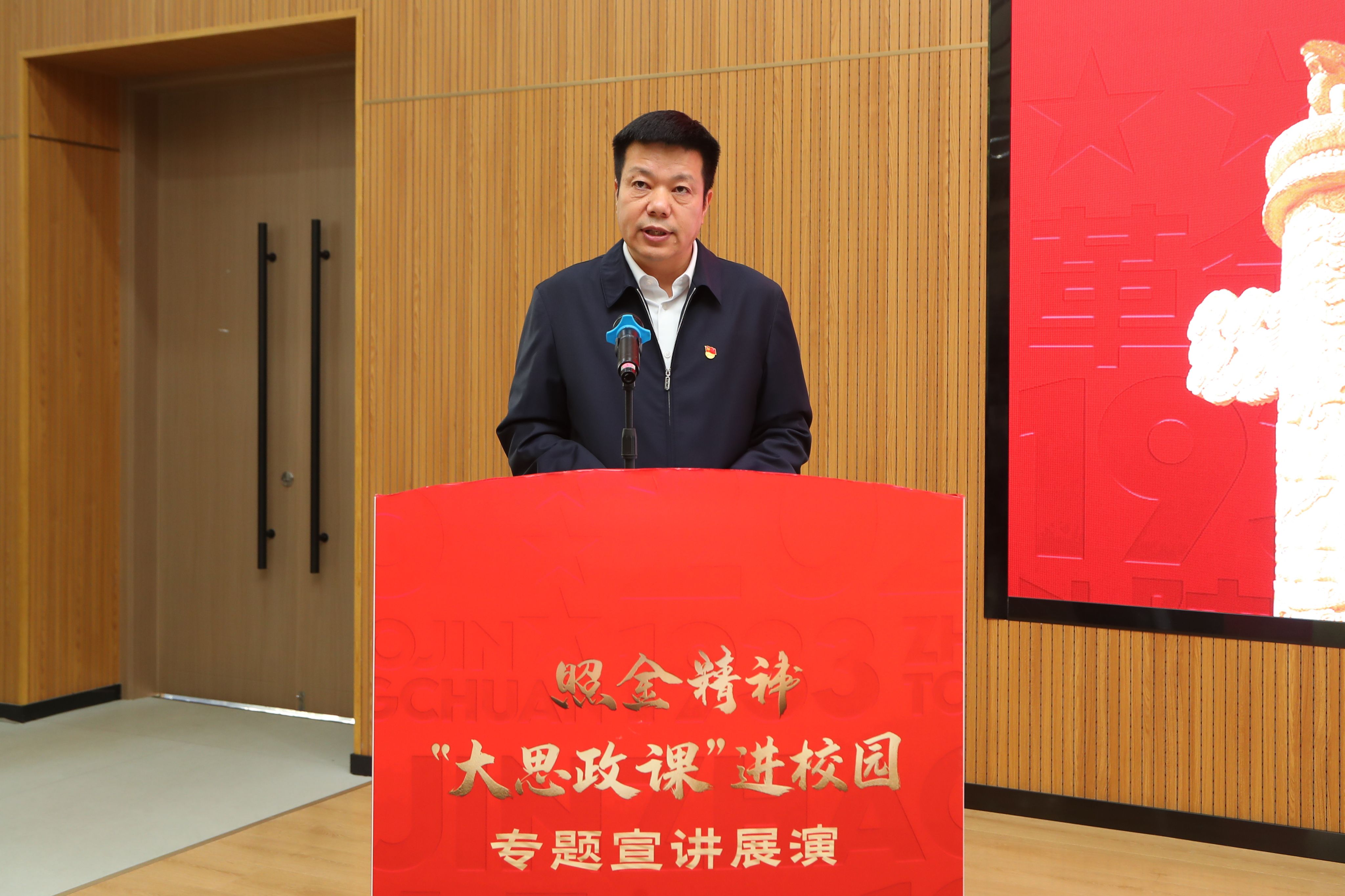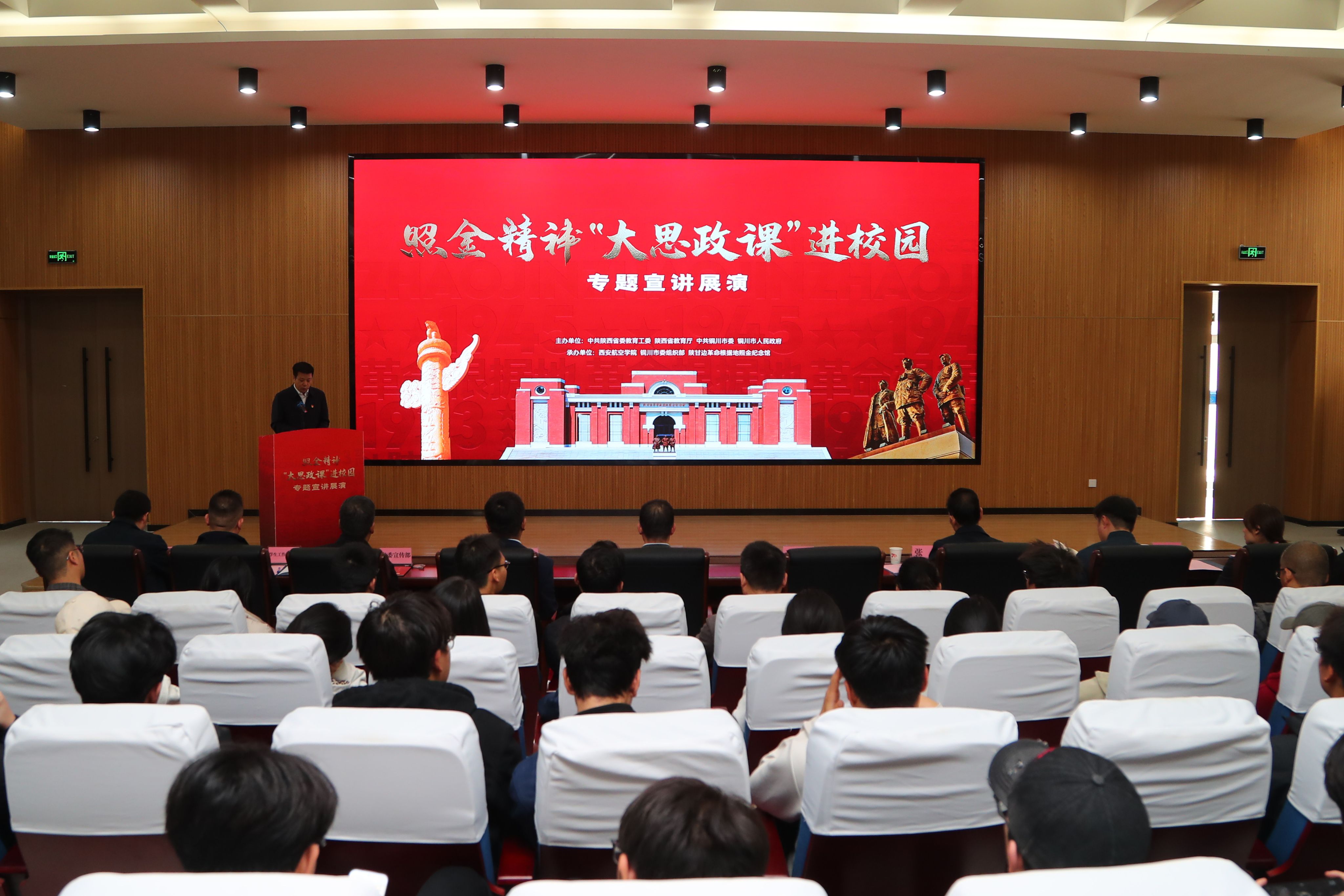 10月28日,由中共陕西省委教育工委、陕西省教育厅、中共铜川市委、铜川市人民政府主办,我校和铜川市委组织部、陕甘边革命根据地照金纪念馆共同承办的照金精神“大思政课”进校园专题宣讲展演在我校阎良校区报告厅举行。铜川市委组织部副部长、铜川市干教办(市委人才办)主任张延峰,陕甘边革命根据地照金纪念馆馆长刘亮,我校党委副书记、纪委书记、监察专员曹渊,党委副书记张昭,以及党委组织部、党委宣传部、党委统战部、学生工作部(处)、教务处、校团委、马克思主义学院等相关部门负责人和师生代表参加。