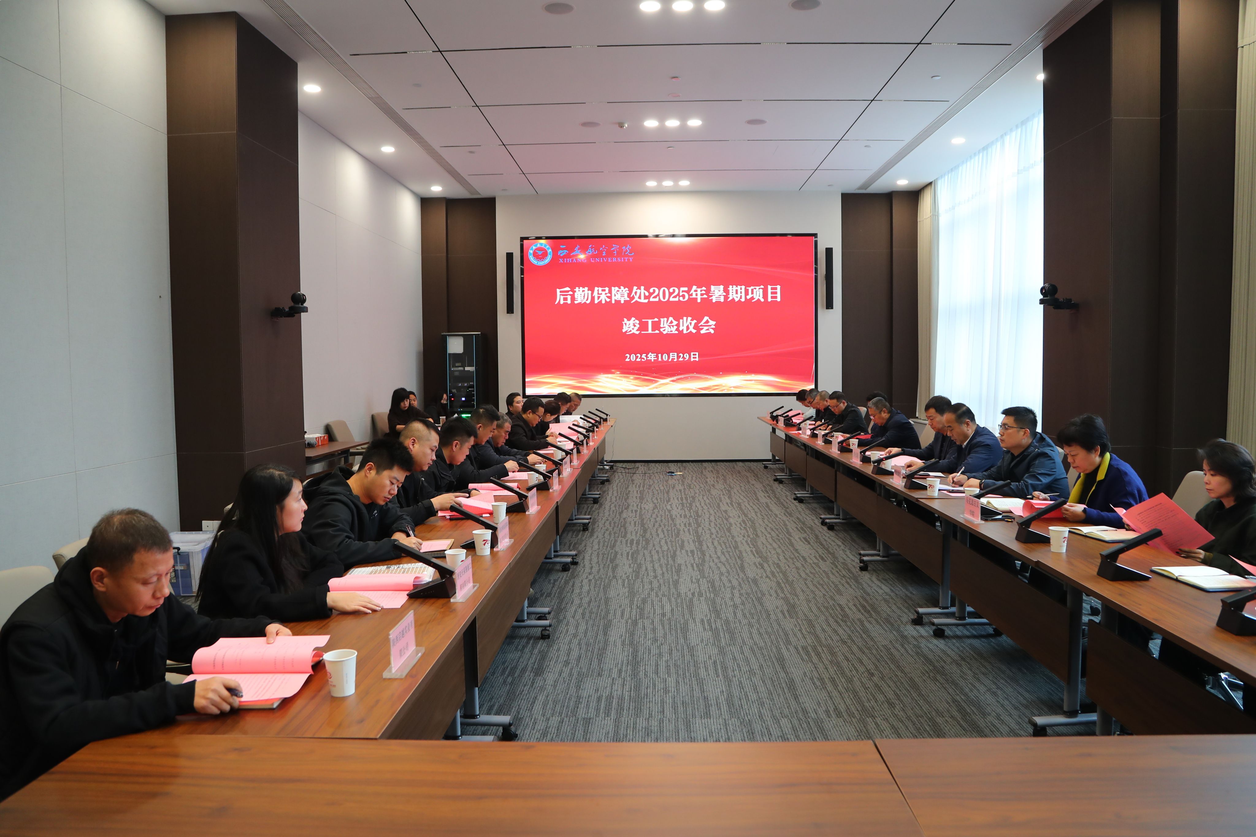10月29日,在阎良校区图文信息中心南侧一楼会议室,后勤保障处组织召开2025年暑期项目竣工验收会,副校长李永刚出席验收会,党政办公室、纪检监察机构、学生处、教务处、审计处、对外交流与合作处(国际学院)、国有资产与实验室管理处、后勤保障处等相关职能部门负责人,专家组、各项目施工方与监理方代表共同参会。会议由后勤保障处处长罗俊忠主持。