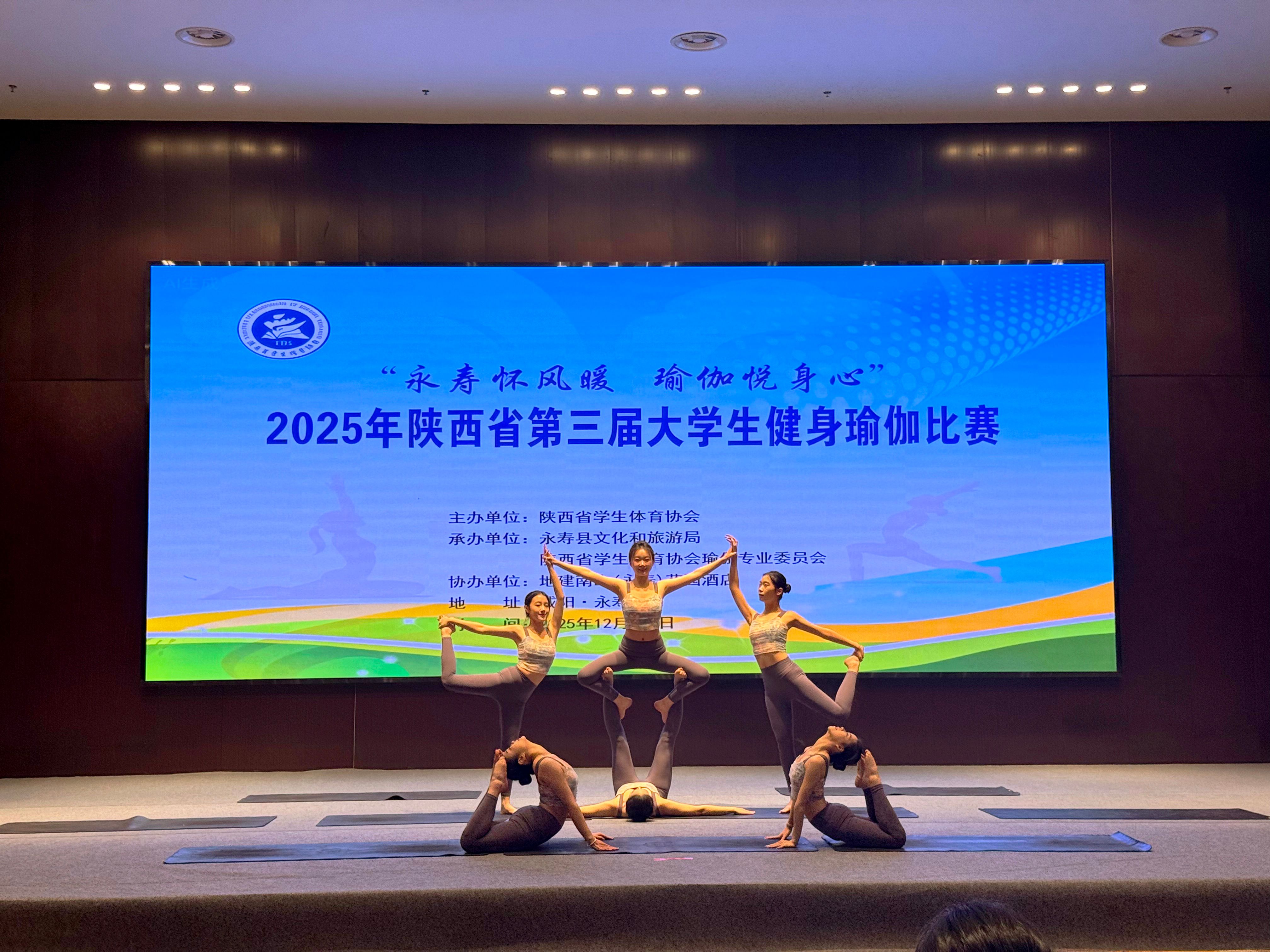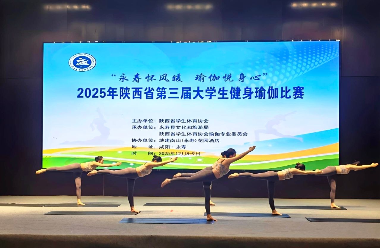 12月8日至12月9日,2025年陕西省第三届大学生健身瑜伽比赛在咸阳市永寿县成功举办。本届比赛由陕西省学生体育协会主办,永寿县文化和旅游局、陕西省学生体育协会瑜伽专业委员会承办,吸引来自全省19所高校的210余人参与比赛。