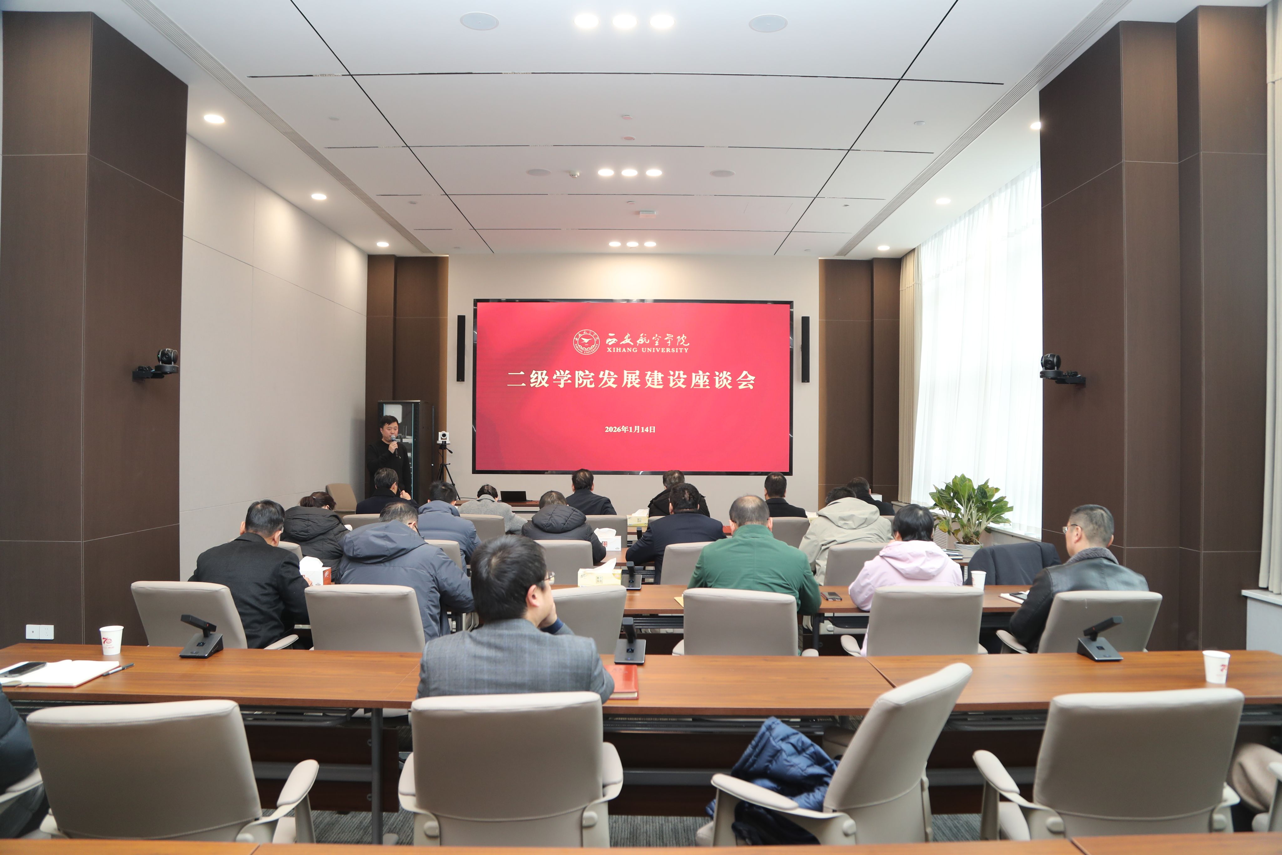 1月14日,学校在阎良校区图书馆一楼会议室召开二级学院发展建设座谈会。校级领导、职能部门负责人及相关二级学院院长参会。