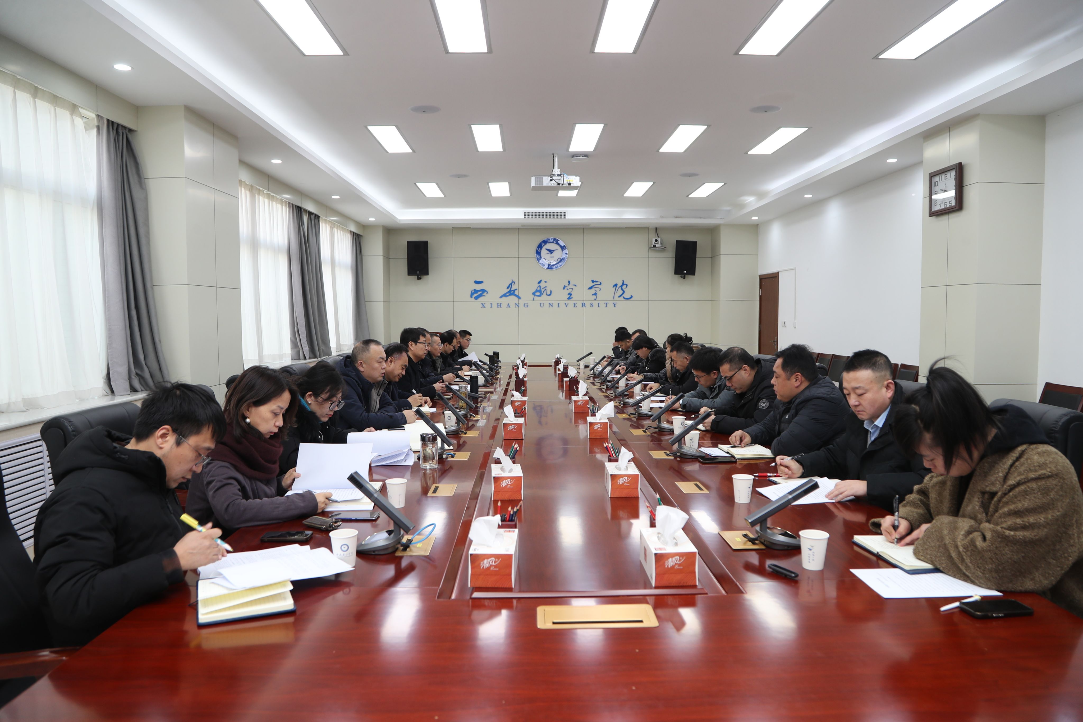 1月22日,在阎良校区第二会议室,副校长李永刚主持召开分管、协管部门2026年工作务虚会。后勤保障处、基建处、保卫处、财务处全体处、科级干部参会。会议以虚促实,以思促行,盘点梳理2025年工作成效,群策群力谋划2026年工作思路。