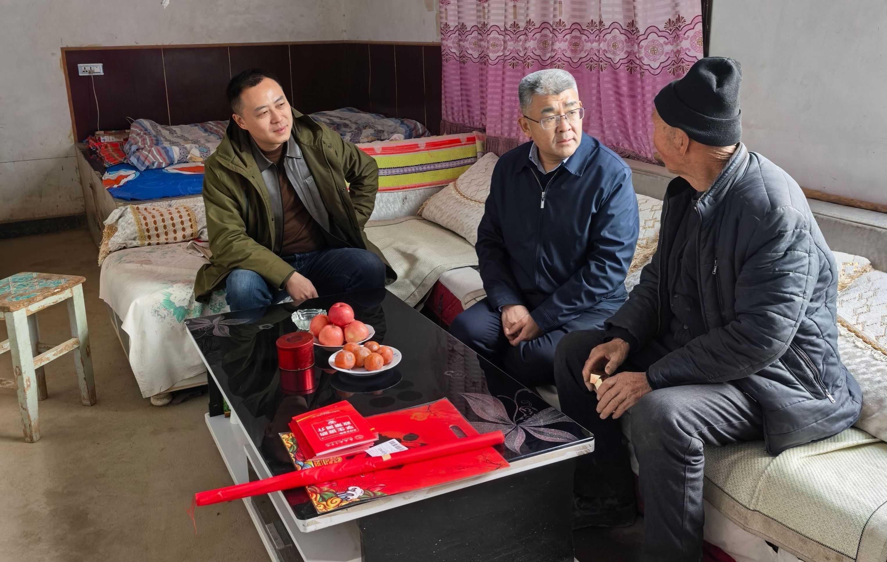 深入基层摸实情,资助育人润无声。此次走访慰问覆盖不同年级、不同专业、不同困难类型学生。每到一户,校领导都与学生及家长亲切交流,详细了解家庭经济来源、生活状况及实际困难,并送上慰问金、春联及米面粮油等爱心物资。在咸阳市淳化县某学生家中,祁玉龙关切询问学生职业发展规划,鼓励学生克服困难,将个人成长与国家发展紧密结合,在逐梦蓝天中实现自己的梦想。在西安市蓝田县某学生家中,蒲永平向家长反馈学生在校表现,强调学校将通过“国家资助+校内奖助+社会帮助”的多维保障机制,确保学生安心完成学业。