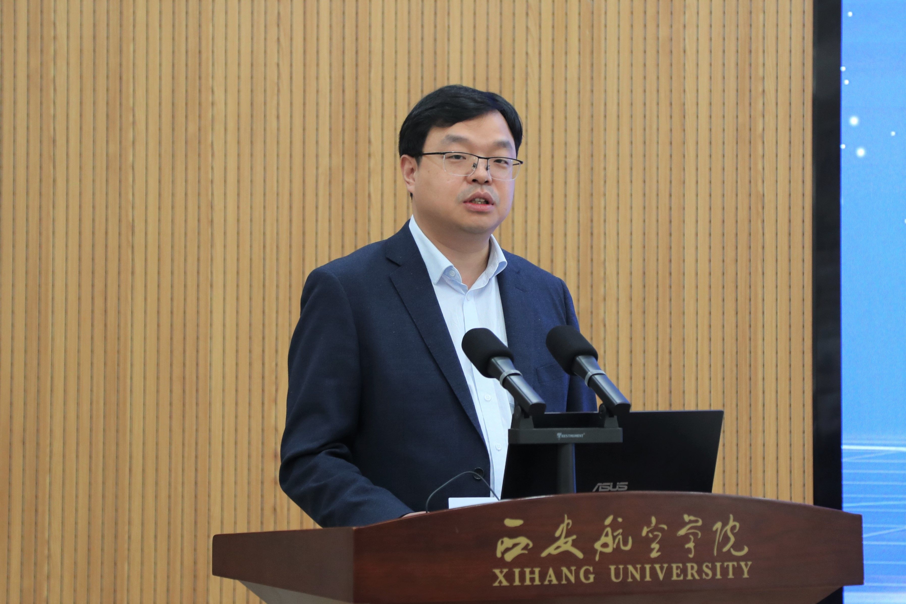 夏楠代表区委区政府、航空基地党工委管委会致辞。她对大会召开表示热烈祝贺,认为学校主体搬迁至阎良以来,与航空基地在产教融合、协同创新等方面取得了丰硕成果,已成为区域创新体系中的重要力量。航空基地将一如既往地为学校与产业、企业的交流合作提供全方位保障支持,期待学校以科技协同创新和产学研协同育人持续助力区域高质量发展,共同打造校地融合、产教共兴的典范,构建“产学研用金”全链条合作新生态。