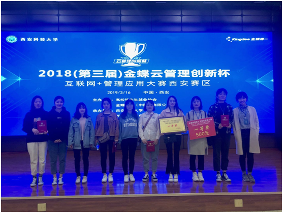 3月16日,第三届金蝶云管理创新杯互联网+管理应用大赛西部赛区比赛在西安科技大学临潼校区举行,由我校经济管理学院王玥、王晓光老师带领的三支学生代表队参加了本次大赛。经过激烈角逐,我校学生以良好的团队协作精神,扎实的专业知识,熟练的软件操作能力取得了一等奖一项、二等奖两项的好成绩,两位指导老师均获得优秀指导教师称号。其中,由明焱熙、刘静、苟萌等三位同学组成的“西航四队”成功晋级全国总决赛。