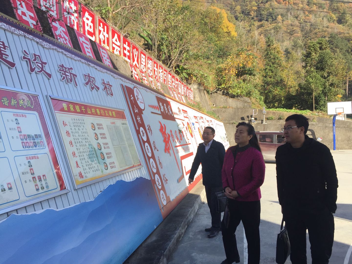 31日上午,谭少敏一行来到学校结对帮扶村千山村,参观了学校资助建设的新民风文化广场,与扶贫工作队成员进行座谈。谭少敏对扶贫工作队的工作给予充分肯定,对大家的辛勤工作表示感谢,同时对工作队员提出四点要求:一是扶贫工作队队员要严于律己,遵守党的规章制度,切实有效地将党的各项惠民政策落到实处;二是要严肃工作纪律与作风,从小事做起,要深入实地,实事求是地做好百姓事,解决好百姓难;三是恪守廉政纪律,心里有百姓,一心为百姓,把百姓当亲人,百姓才会把我们当家人;四是要注意生活纪律,作为一线扶贫工作队队员,走村入户一定注意安全,队员之间要相互帮助,相互团结,扎扎实实做好入户走访工作。