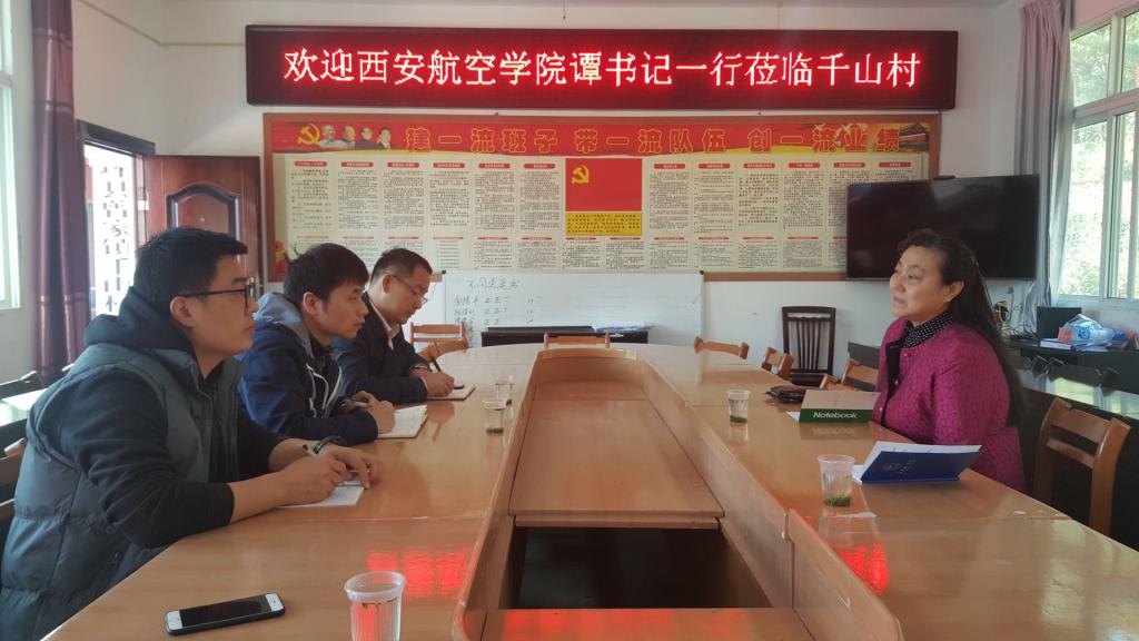 随后,谭少敏一行与村“两委”和县招商局驻村干部罗学平副局长就千山村扶贫工作召开座谈会,了解全村扶贫工作的完成情况,并听取村“两委”关于西安航空学院对口帮扶千山村的项目建设和实际资金投入情况的报告。谭少敏强调,扶贫工作是一项政治任务,更是一份社会责任担当,我校非常重视扶贫工作,积极承担扶贫工作责任。学校领导班子经常性地到村推进扶贫工作,结对帮扶干部深入到户落实帮扶措施,驻村工作队恪守驻村工作纪律,切实有效地推进精准扶贫工作。学校一切帮扶项目与资金扶持都是建立在“想百姓之所想,急百姓之所急”的基础上,学校一直与村“两委”、百姓心连心、肩并肩,克服一切之困难,发展壮大本村养殖产业,扩大规模,形成效益,拉动内生动力,形成持续的增产增收,使得整村早日脱贫。
