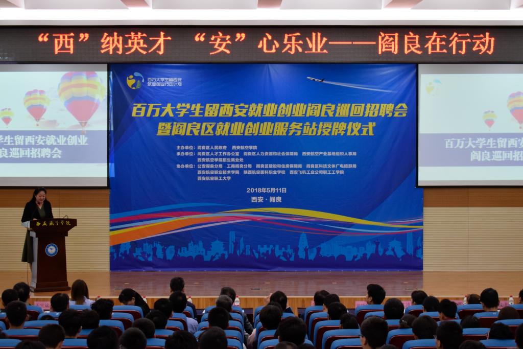 为贯彻落实中省以及西安市关于大学生就业创业的各项服务工作,深入实施“百万大学生留西安就业创业5年行动计划”,5月11日上午,由阎良区政府和我校共同举办的“百万大学生留西安就业创业阎良巡回招聘会”暨阎良区就业创业服务站授牌仪式在我校阎良校区报告厅举行。