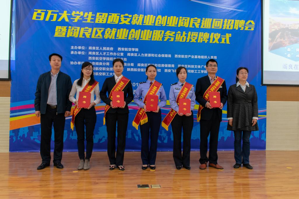 冯立文为区内5所高校颁发了“阎良区就业创业服务站”牌 ,黄晓民、沈沛兰为阎良人才新政工作人员颁发了“阎良区人才新政宣传员证书”。