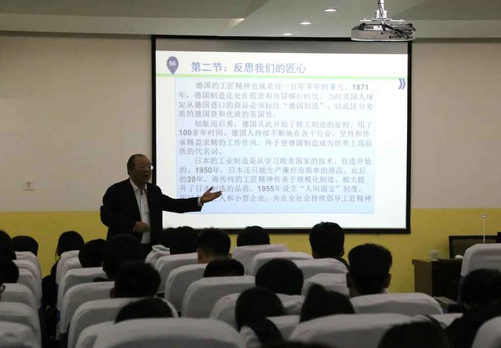 郭勇以各行各业工匠师祖为序,列举了大量生动而详实的案例引出主题,围绕“工匠精神的概念、反思我们的匠心、弘扬工匠精神的意义、如何弘扬工匠精神”四个方面,引经据典,深入阐述,全面解读了作为2016年政府工作报告热词的“工匠精神”的内涵。提出工匠精神包括卓越的创造精神、精益求精的品质精神、用户至上的服务精神。同时,弘扬工匠精神对于凝聚中国工匠的精神世界,培养敬业、乐业的职业态度,适应时代发展具有重要意义。最后,郭勇对在座师生提出殷切希望,今后无论从事任何职业,对待工作都要有守正诚信的优秀品质,精益求精的精神理念,真正发挥出工匠精神。