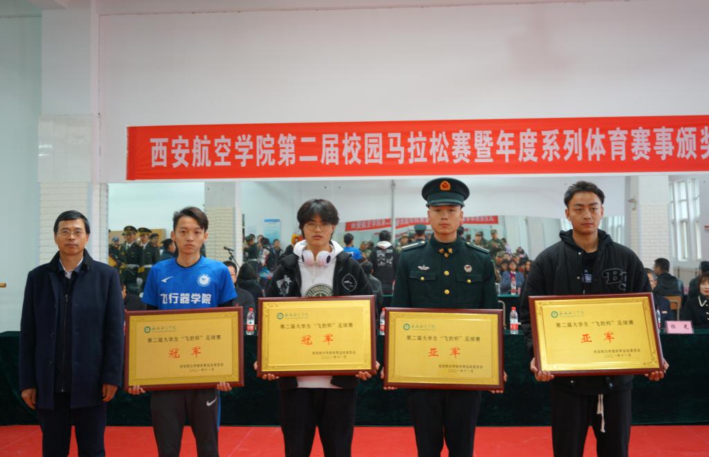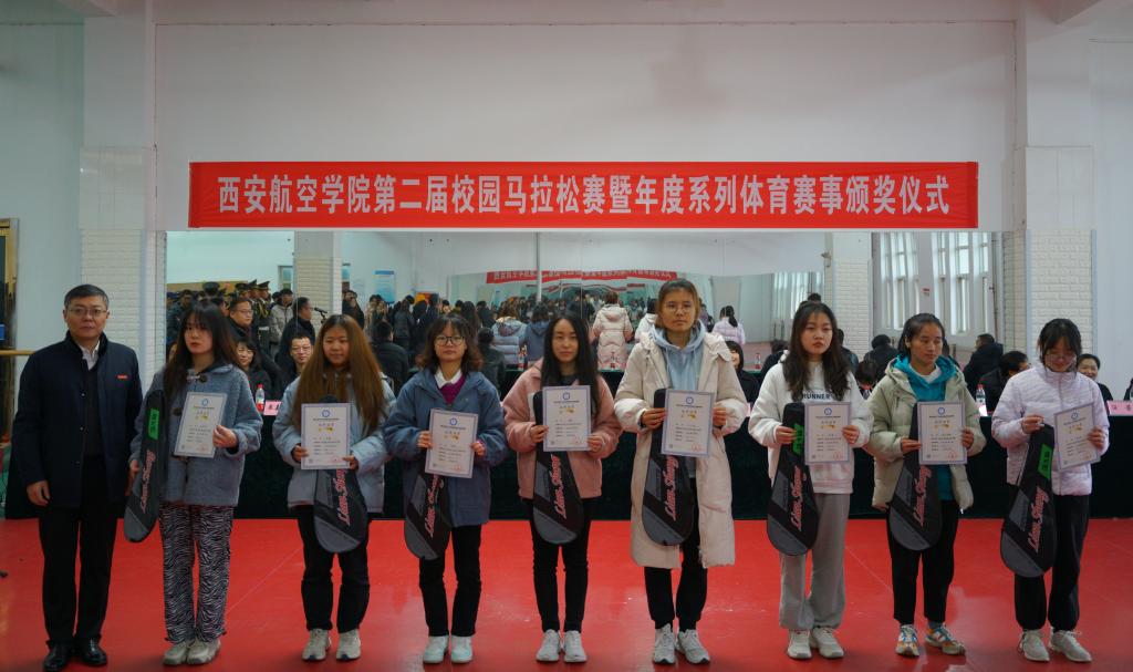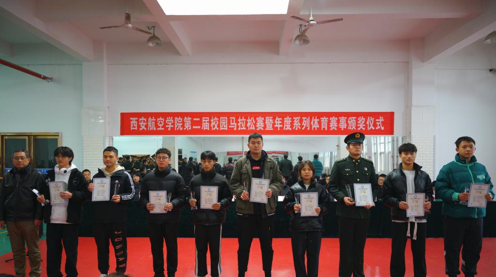 12月10日,由学校体育运动委员会主办,体育部承办的西安航空学院第二届校园马拉松赛暨年度体育赛事颁奖仪式在阎良校区成功举办。本届校园马拉松比赛设置了男子7公里和女子3.5公里两个项目。来自阎良校区各二级学院224名学生参加了比赛。副校长宋文学、体育部主任张建、各二级学院负责人及部分师生参加了活动。活动由体育部副主任李然主持。