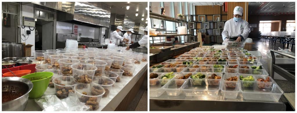 学校建立“青葱侠”点餐平台,为制动管控的七个楼层约900名学生进行个性化供餐服务。餐饮人员克服困难,保证供餐服务正常运行,悉心拟定每日菜谱,保持饭菜荤素搭配、营养均衡,每日送餐2000余份,全力做好在校师生餐饮保障。学生公寓保障人员每日定时对楼宇内公共区域进行消杀,同时为宿舍及卫生间配备消毒用品,凌晨2:00-2:30进行卫生间紫外线消杀。每天对校园内重点区域、垃圾点、办公场所、家属区楼道入户门、楼梯扶手等容易滋生病菌的区域进行清洗和消毒。对医废垃圾和生活垃圾区分存放,建立垃圾清理台账,切实从源头上切断疫情传播途径。开通网上报修平台,及时处理学生宿舍内各类电器、设备故障。