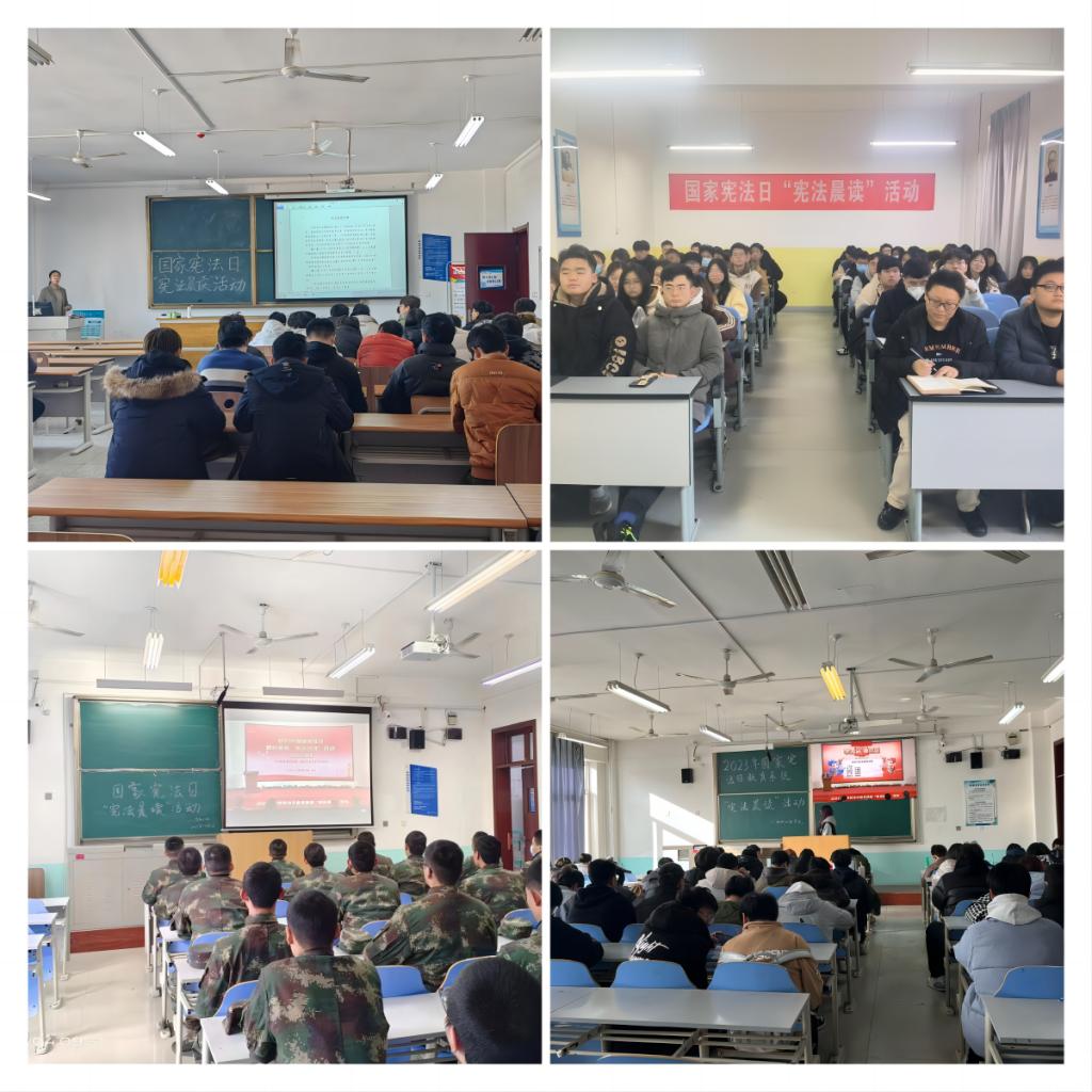 12月1日至7日,开展“宪法宣传周”活动期间。各学院组织学生召开“学宪法 讲宪法”主题班会,观看了教育部国家宪法日“宪法晨读”活动,诵读部分宪法条例,学习了解宪法常识,跟唱宪法主题歌曲《宪法伴我们成长》。
