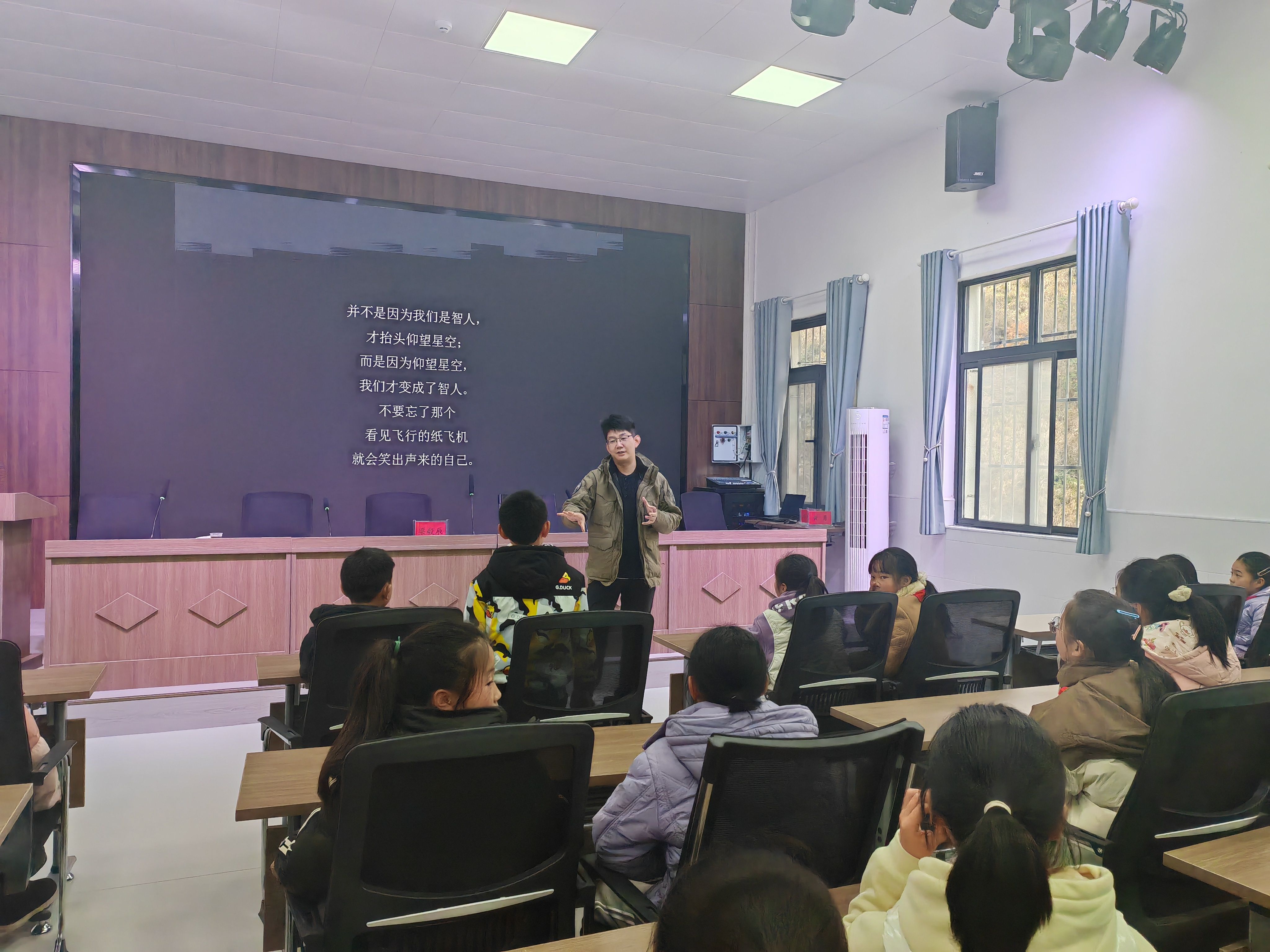 讲座结束后,我校向曾家镇小学捐赠了飞机模型,鼓励孩子们要努力学习,树立远大航天梦想,不断探索空天奥秘。