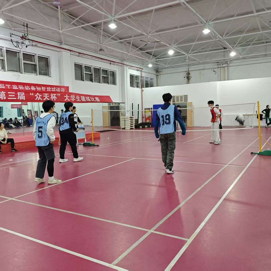 在10月14日举办的开幕式上,陕西省民俗体育协会的毽球队员们带来了精彩的表演赛,赢得了现场参赛队员和观众的掌声和喝彩。比赛期间,场馆内洋溢着热烈而欢快的气氛。参赛选手们全力以赴,团结协作,勇敢拼搏,尽情享受着毽球运动带来的乐趣与挑战。毽球在空中飞舞,划出一道道优美的轨迹,选手们身手敏捷,时而轻盈踢起,时而大力扣杀,精湛的技艺不时引来现场观众的阵阵掌声。观众席上,加油声、欢呼声此起彼伏,许多观众对这项集竞技性、观赏性和趣味性于一体的运动表现出了浓厚兴趣。经过竞相角逐,最终理学院代表队包揽冠亚军,低空管理与数字经济学院获得体育道德风尚奖,理学院获得最佳组织奖。