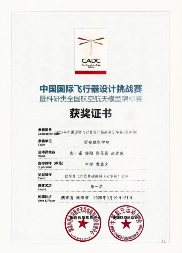 2025年中国国际飞行器设计挑战赛总决赛暨科研类全国航空航天模型锦标赛于10月22日至27日在河北省张家口市举行。赛事由国家体育总局、中国学生体育联合会、中国航空运动协会主办,吸引西北工业大学、哈尔滨工业大学、南京航空航天大学等全国高校1600余名师生参赛。我校航模队凭借扎实的专业功底与创新实践能力,斩获多个奖项,展现了西航学子在航空航天挑战赛中的实践创新实力。