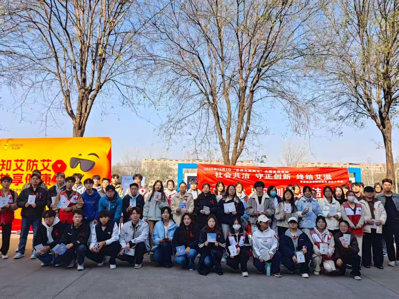 2025年12月1日是第38个"世界艾滋病日"。为深入贯彻落实《中华人民共和国传染病防治法》及《中国遏制与防治艾滋病规划(2024—2030年)》精神,推动校园艾滋病防治工作深入开展,校医院联合校红十字会于2025年11月1日至12月2日组织开展了以"社会共治,守正创新,终结艾滋"为主题的系列宣传活动。活动通过多元形式普及防艾知识,倡导健康生活方式,在全校范围内营造了关爱生命、共抗艾滋的良好氛围。
