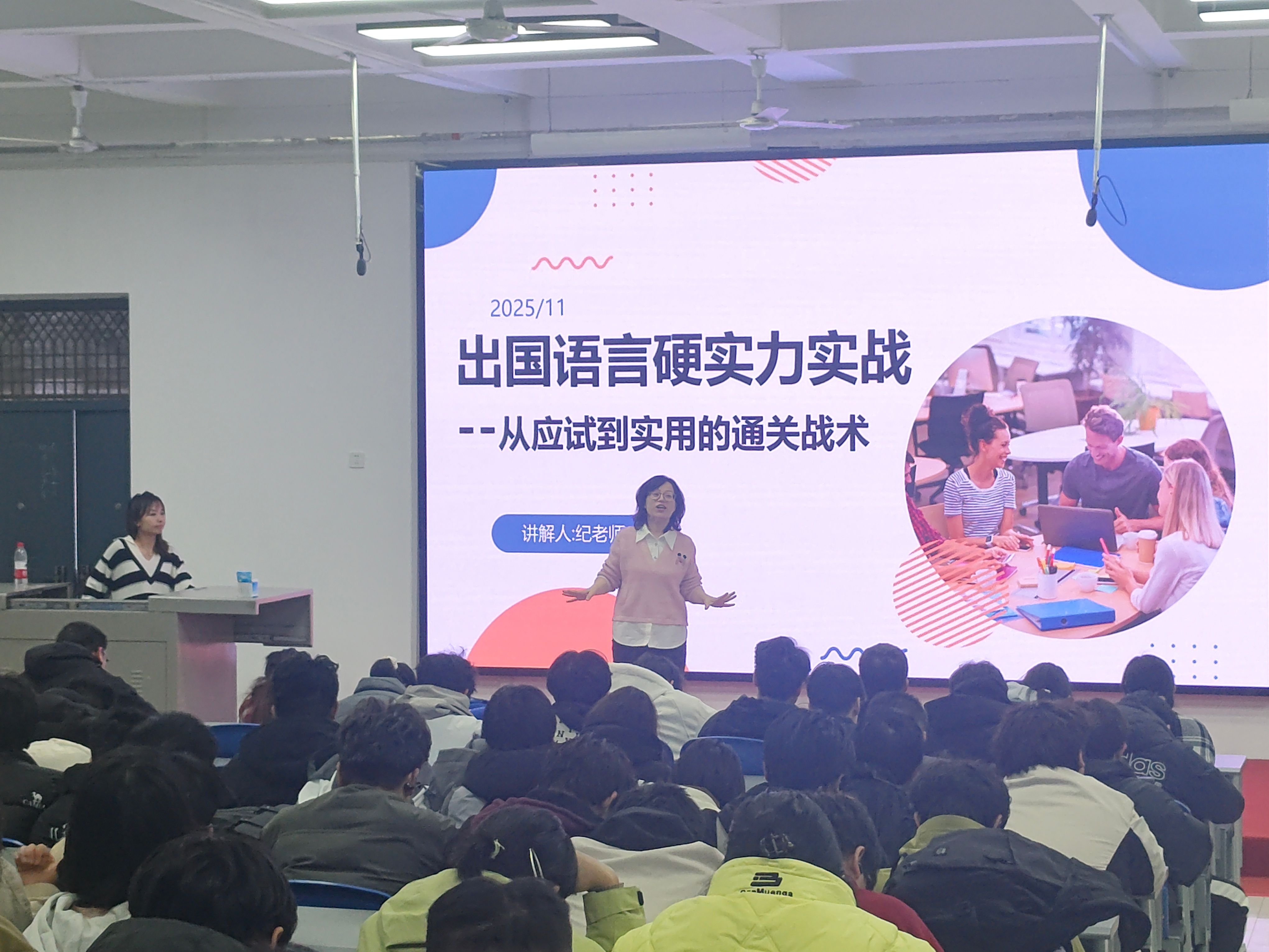 此外,访学项目宣讲会还特邀往期项目优秀参与学生做交流发言。他们通过播放生活纪实短片,分享在外生活学习故事等形式,讲述了项目参与的经历与心得,以亲历者的视角,使同学们对海外访学项目有了更加深入的了解。