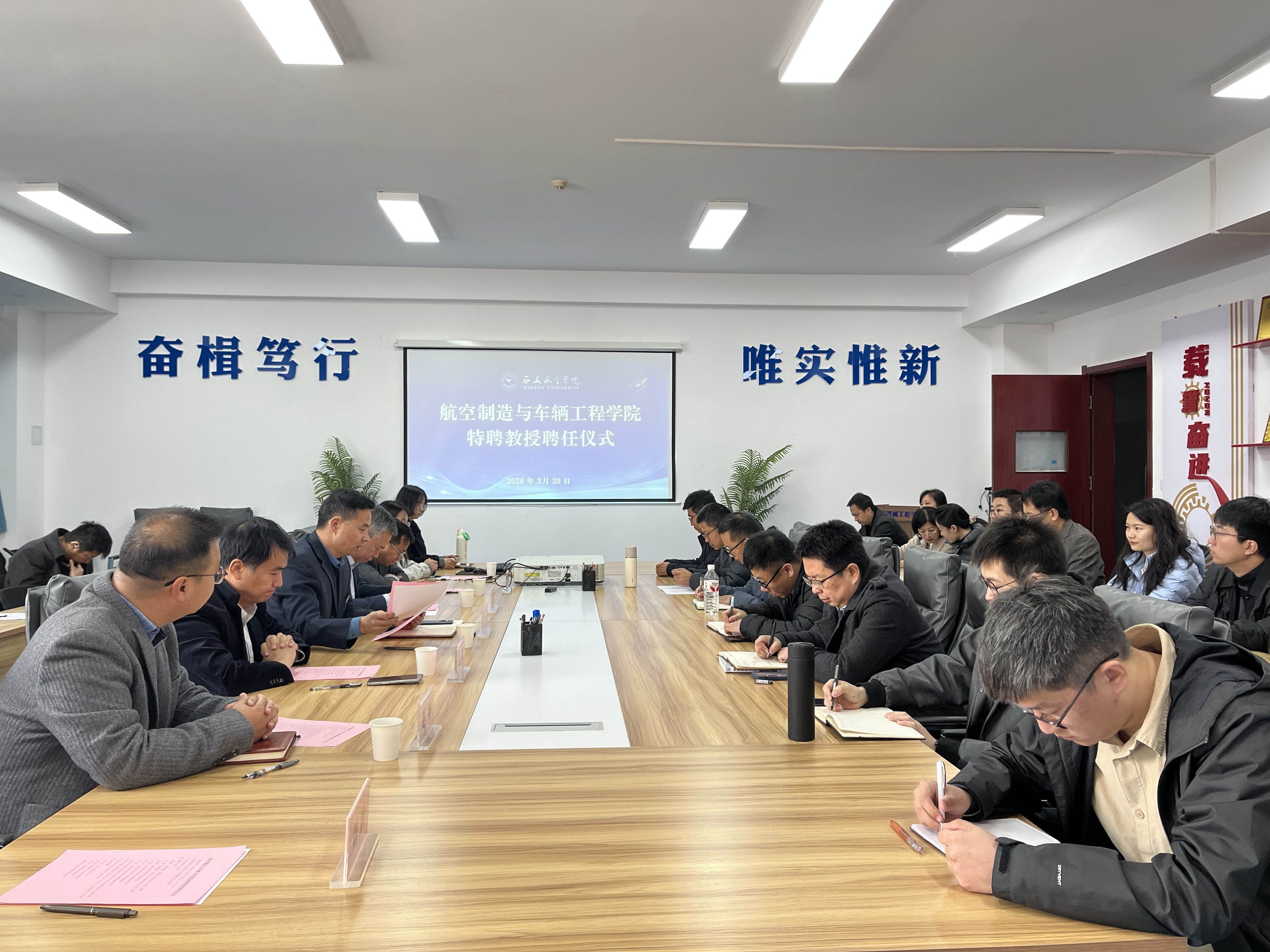 3月20日,航空制造与车辆工程学院举行特聘教授聘任仪式,聘任彭彪林、林刚两位教授为学院特聘教授。学院领导班子成员、各专业负责人及教师代表出席仪式,仪式由院长王永锋主持。