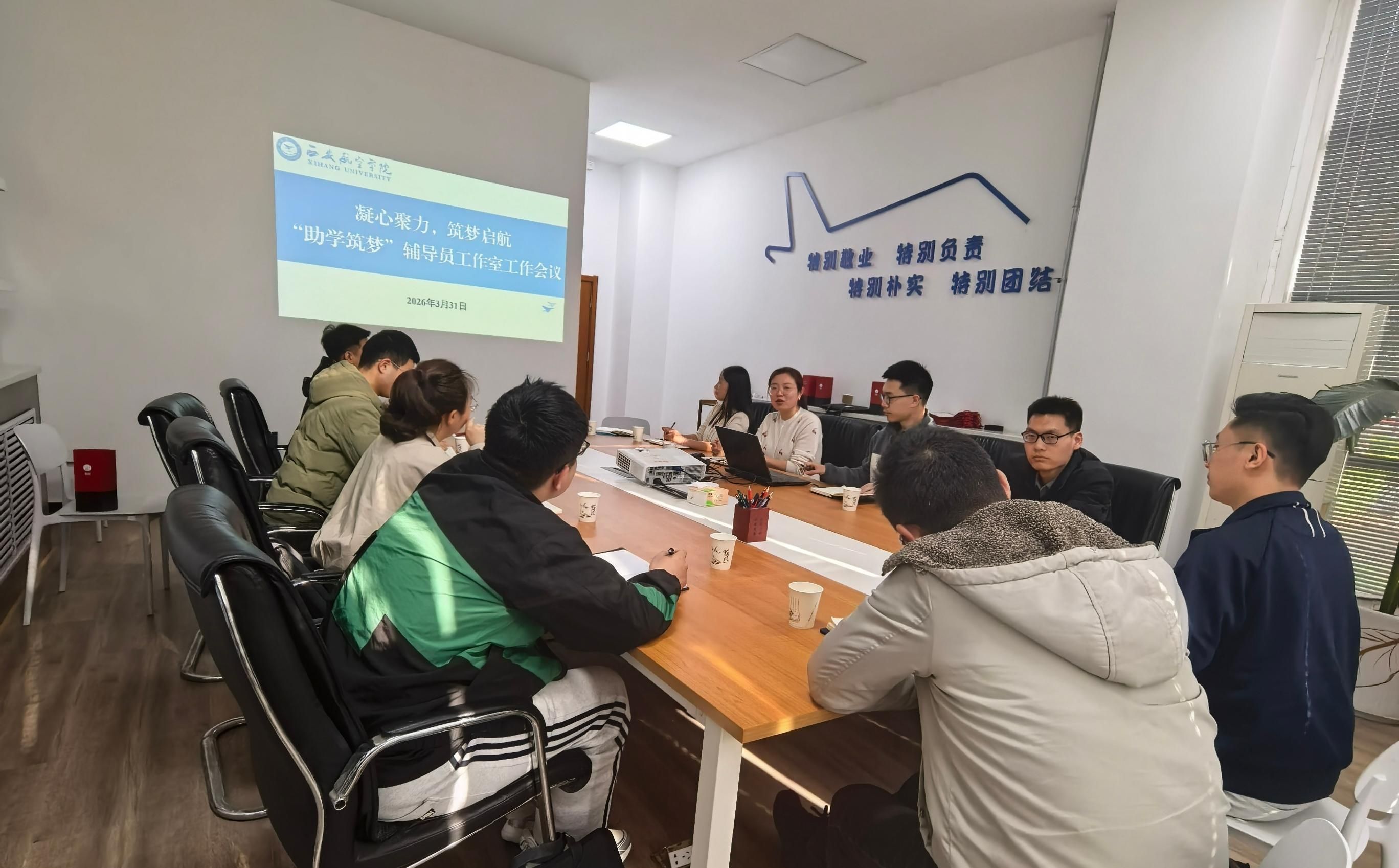 近日,学生工作部(处)组织“助学筑梦”“翼铸盾”两个校级辅导员工作室成员召开2026学年工作推进会,工作室全体成员、学工部相关负责人参加会议。