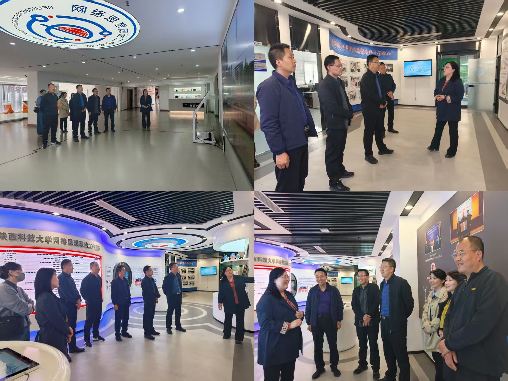 马克思主义学院一行实地参观了网络思政中心大厅、网络思政研究中心及优质网络文化作品培育众创空间等,陕西科技大学网络思政中心副主任董雪介绍了中心在网络思政平台搭建、内容创作、队伍建设及育人成效等方面的工作举措及特色成果。