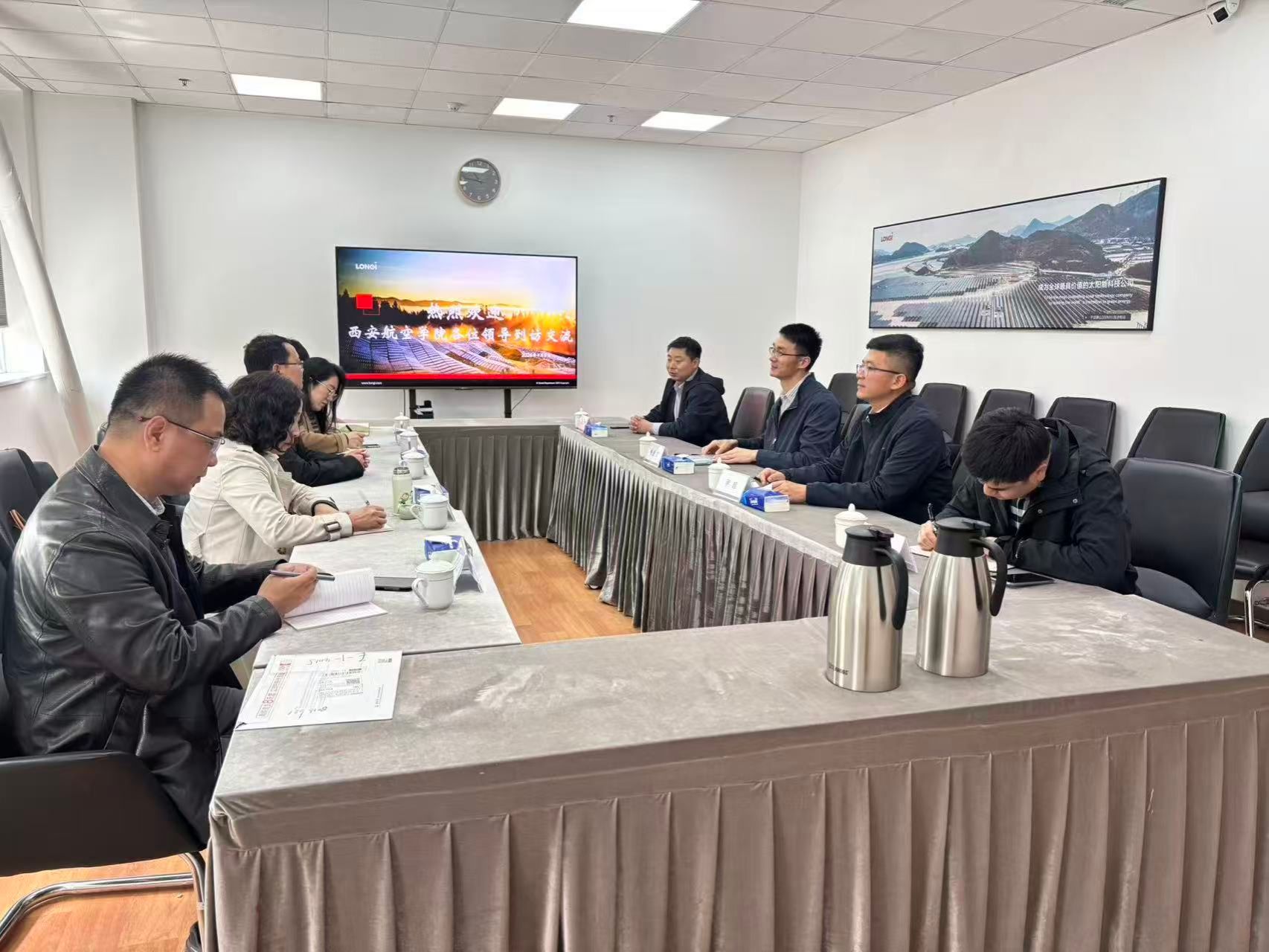 在隆基绿能科技股份有限公司,公司负责人徐金文、人力资源部负责人罗超、运营部门负责人董磊、招聘部郑晓勇经理等对考察组一行表示热烈欢迎,并开展座谈交流。徐金文详细介绍了公司当前的发展规模、产业布局及应届毕业生招聘计划,重点强调了企业对本科生差异化能力培养的需求,并在培养学生自主学习能力、扎实专业基础和良好职业素养等方面给出了意见建议。